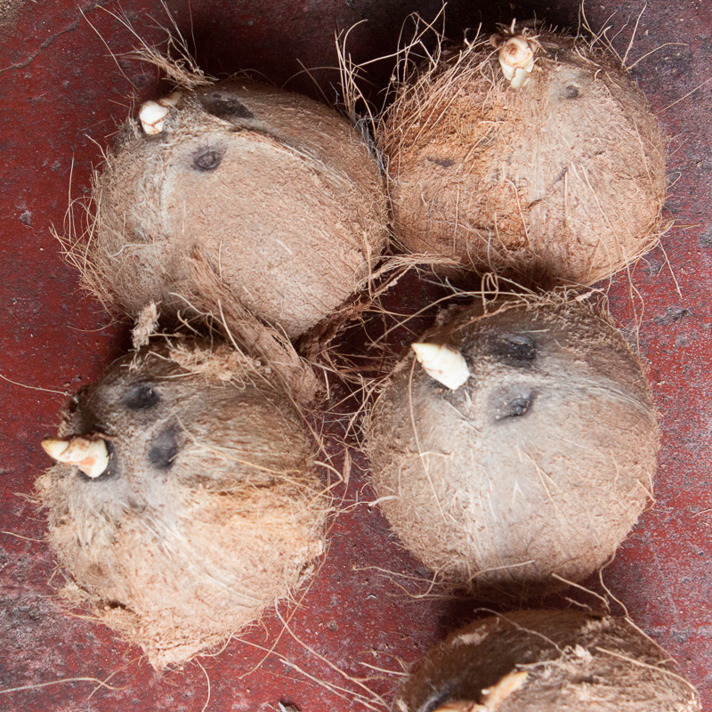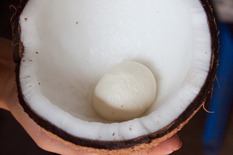 The balls are formed in the coconut as it starts to germinate.  Here’s one in its natural state: