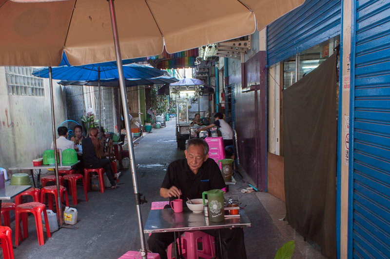 After relaxing at Wat Suthat for a while (and availing ourselves of their clean toilets), we were rested and ready and set out for lunch.