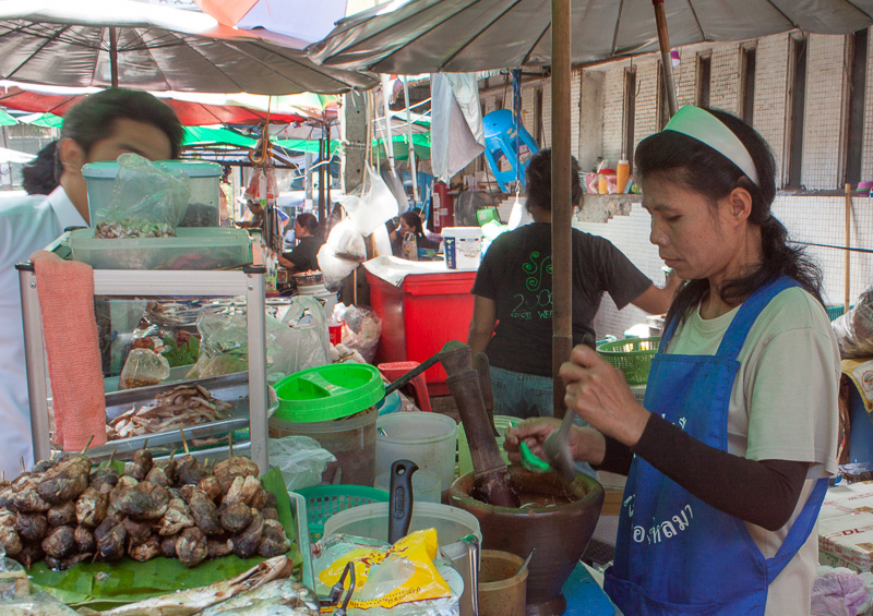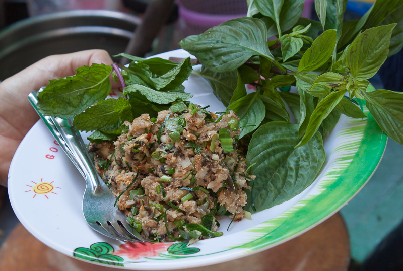 Our next stop was what I’d been waiting for all day.  Catfish Laarb.  The ingredients are mashed in a giant mortar and pestle (also known as a pok-pok, for the sound it makes.)  With plenty of thai peppers, roasted rice, lime juice & herbs, it engages every tastebud in your mouth.