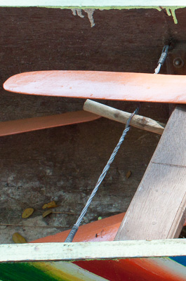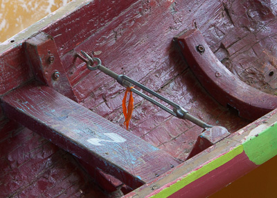 Welded steel rods are probably stronger, but at a cost of very limited adjustability; note also the longitudinal reinforcement in this boat:
