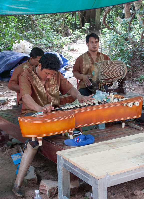 These musicians have a sign that says: “Khmer tradition band has been given by handicap with landmine. We stop begging. We want to live with dignity. Our children want to go to school. We try to work in this band for earning and supporting our families. All dear charitable tourists, would you mind contributing money to charity, please? Thank you very much, God bless you all time.”