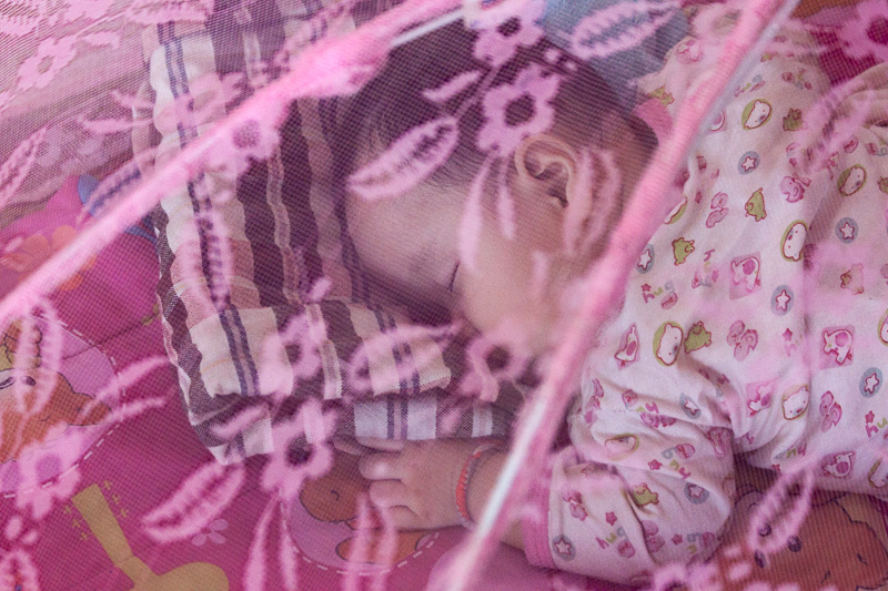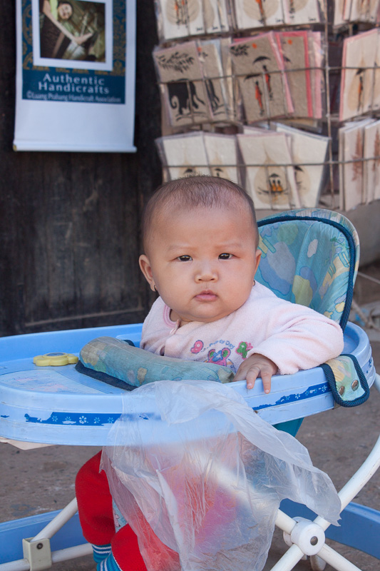 “Bring your children to work day” is nothing new. Women the world over have been doing it since the dawn of time. This child was next to a loom at the Houey Hong Vocational Training Center for Women outside Vientianne: