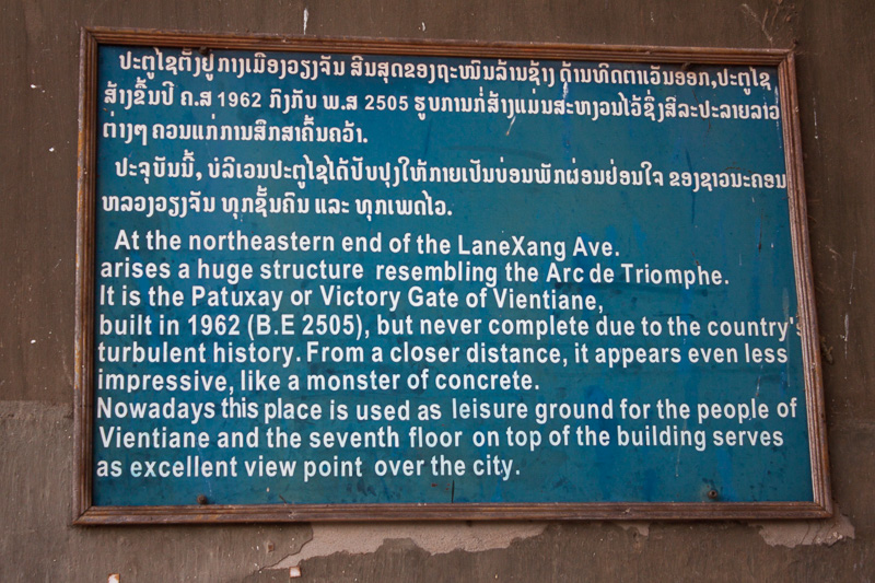 In the background of the Lycée is the Patuxay. A plaque there describes it like this: