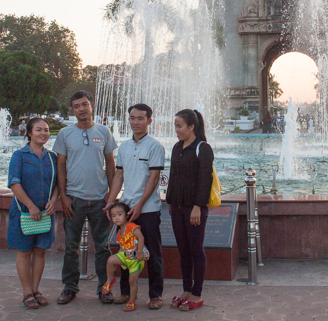 The Laotian part of the plaque must have said something a bit more attractive, because the arch is a major photo op for the locals: