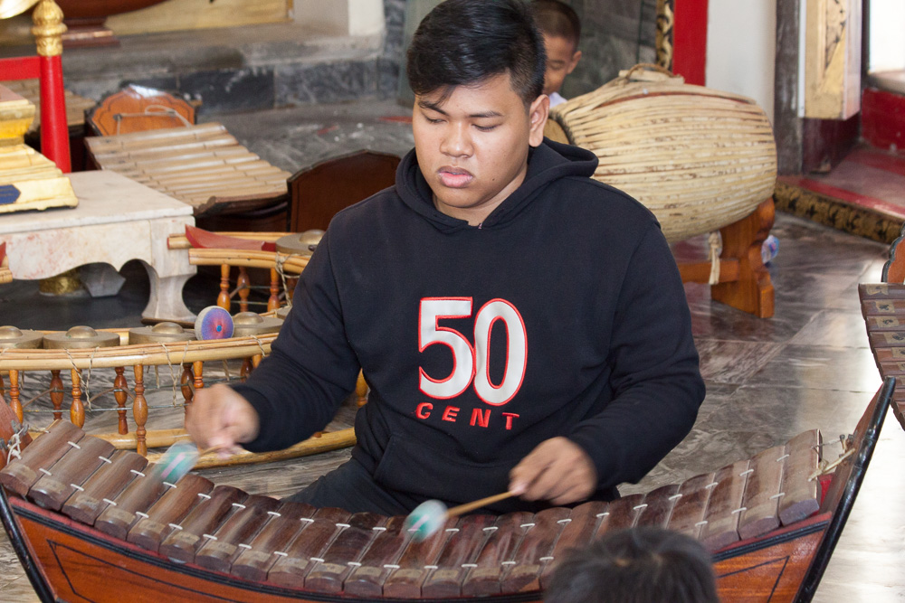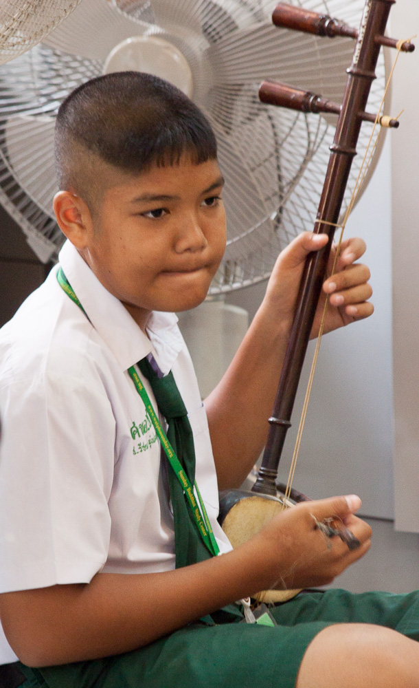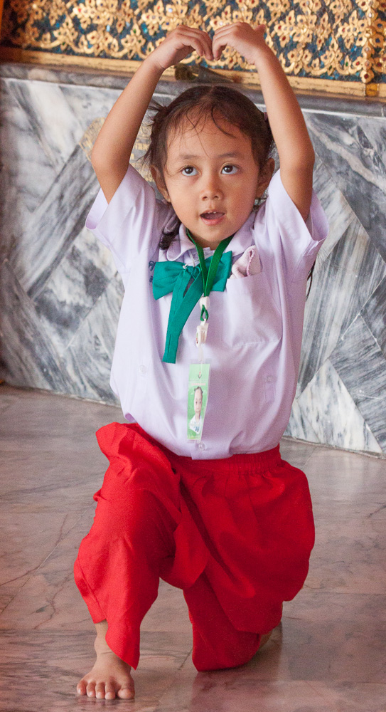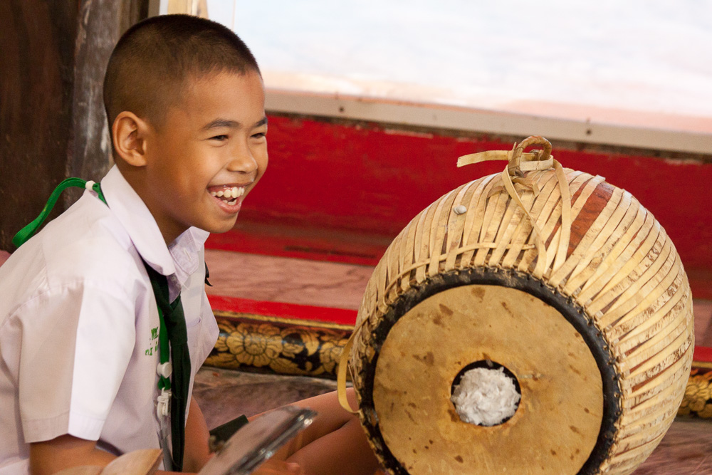 Wat Pho is a a big Buddhist temple complex in the heart of Bangkok. It seems to be a huge attraction for locals as well as tourists. We visit on a Sunday and happen upon a number of classes for children, from classical dance to traditional instruments.