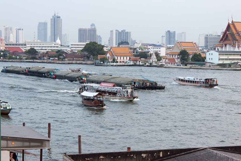 Bangkok is bisected by the Chao Phraya river, which is also the major river in Thailand. Boat traffic on the river is bustling and chaotic.