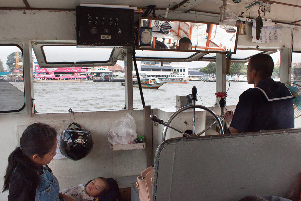 This captain has his family with him. Note on the mirror the picture of the bespectacled, beloved and recently deceased King Bhumibol.